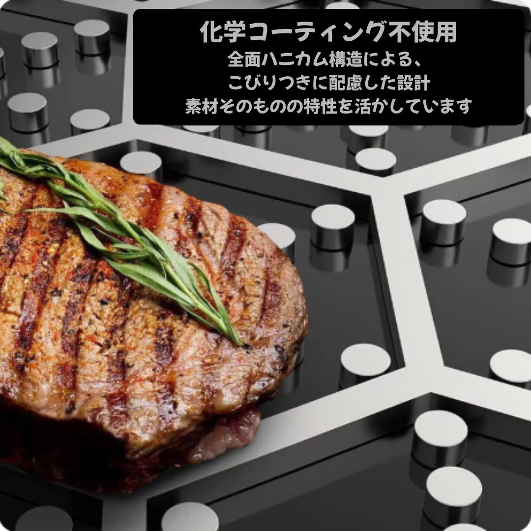 NukuPan Pro は 316ステンレス、三層構造(トライプライ)、 ハニカム構造により、食材がスムーズに離れる設計です。